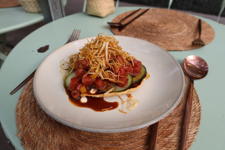 Tostada de atún con durazno @ Mal Hecho