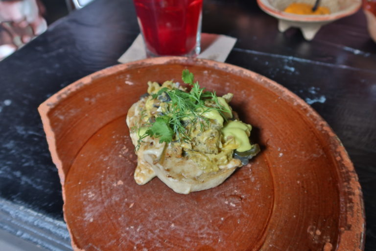 Mollete de huitlacoche con quesillo y huevo @ Expendio de Maíz