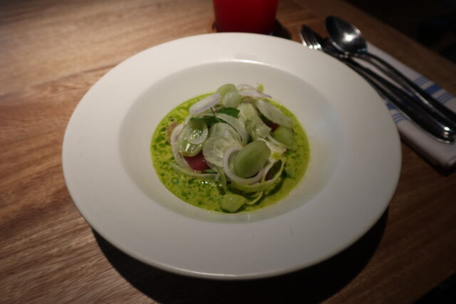 Sierra wahoo, pipián y brocolini.