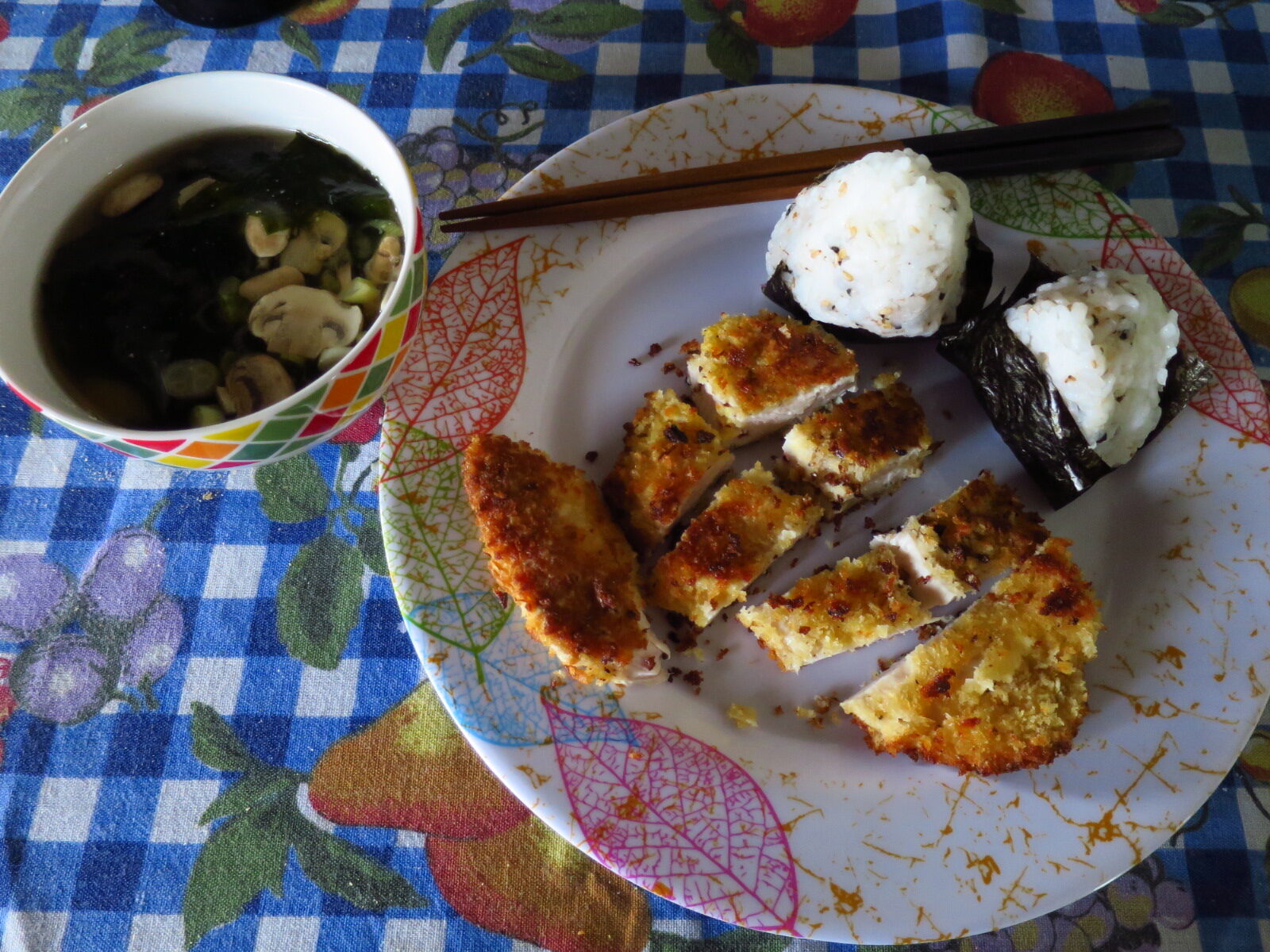 Sopa Miso, Onigiri y Pollo Katsu f/1.8 ISO 640 1/30 5mm Canon PowerShot S120 25 de septiembre de 2021 Post published on: 25 de septiembre de 2021 Tagged: almuerzos, comidas, Japonesa Short link