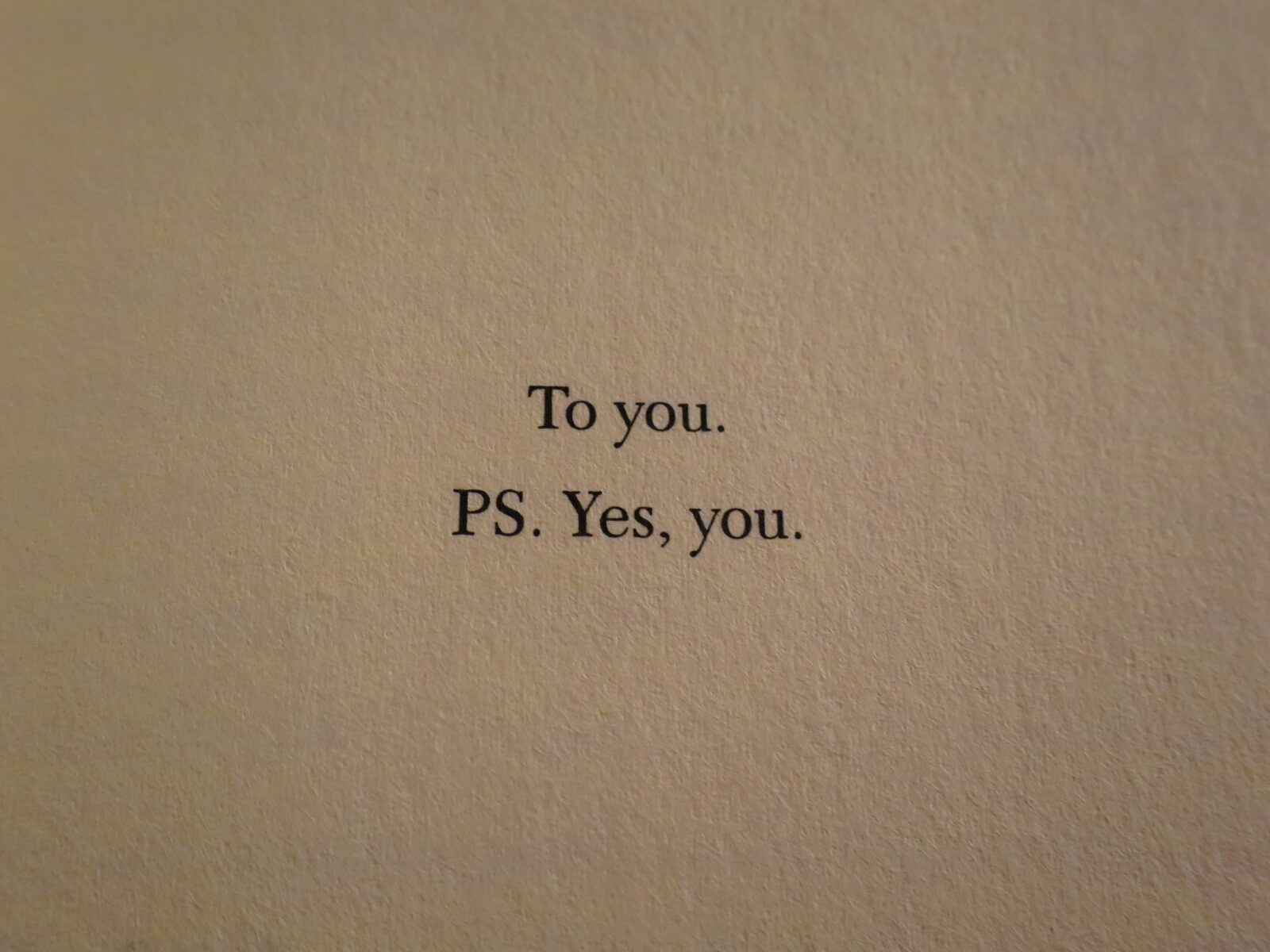 To you. Yes, to you. f/2.8 ISO 800 1/40 8mm Canon PowerShot S120 5 de mayo de 2020 Post published on: 6 de mayo de 2020 Tagged: citas, lecturas, libros Short link